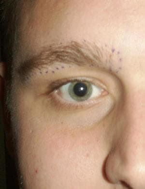 Como vemos, esta modificación consiste en remover la ceja, no afeitándose, sino arrancándosela entera. El hecho es que este joven piercer muestra todo el grotesco proceso de cómo extrajo su ceja (y de paso se dió el gusto de tomarse fotografías jugando con ella).