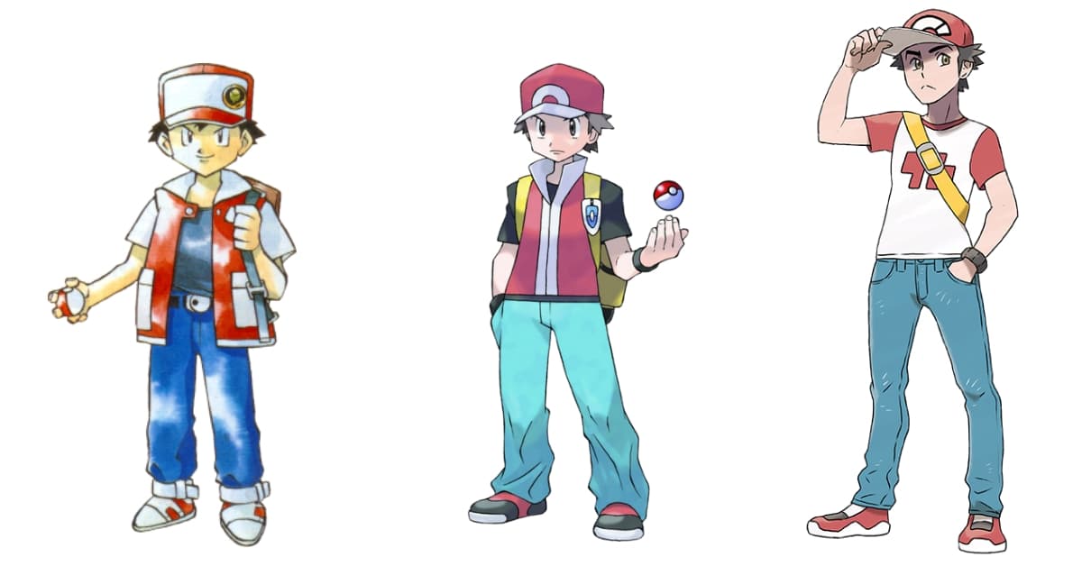 Cabe mencionar que la contraparte de Ash en los videojuegos (Red) no posee ese isotipo en la gorra. A pesar de su constante evolución, este entrenador mantiene una gorra con isotipos que pretenden emular medallas o Pokébolas: