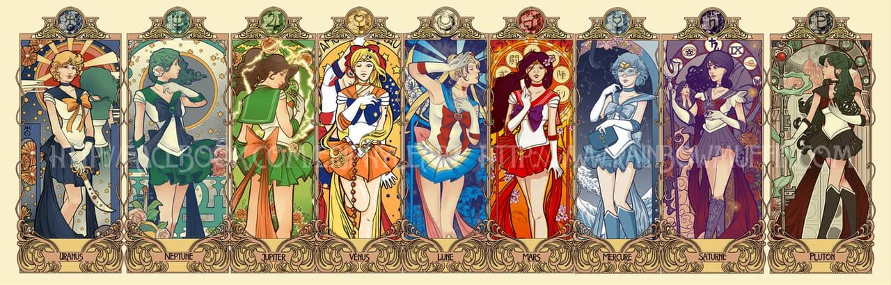 Eri-phyle dibujó a las Sailor Scouts con estilo art nouveau, la corriente artística que surgió en Francia a principios del siglo XIX.