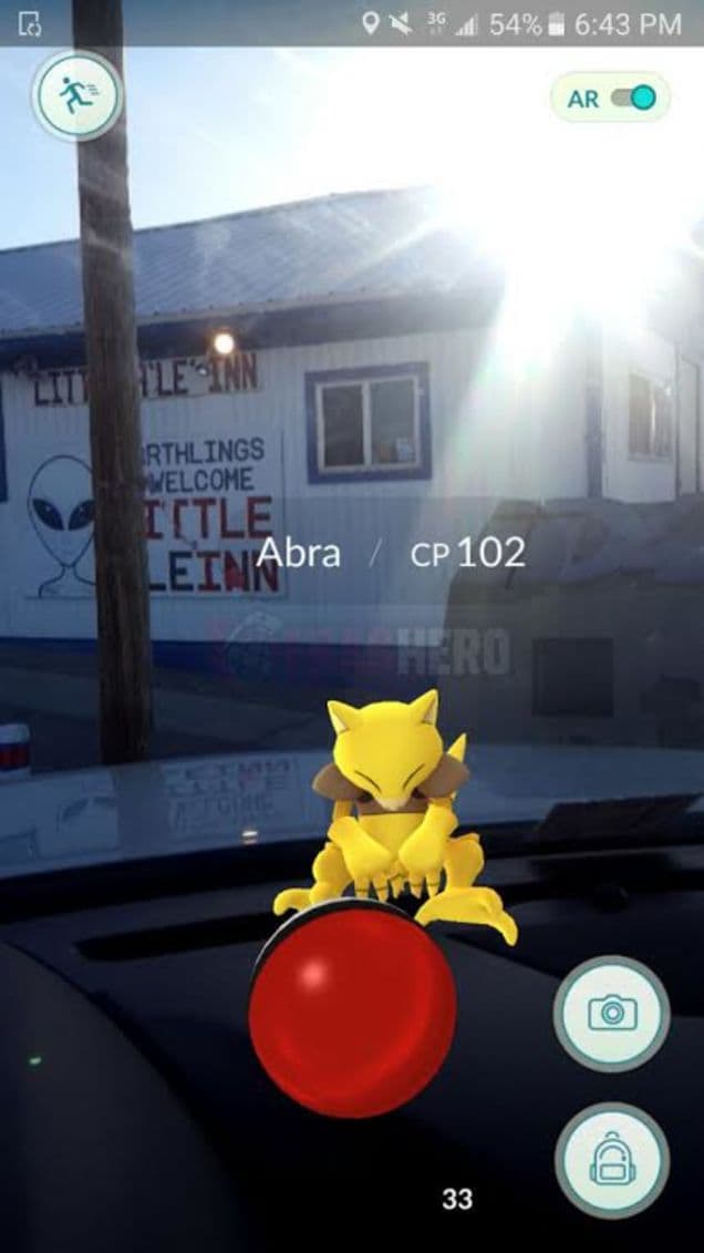 Lo que sí encontró fue un genial Abra dormido muy cerca de un local. Las exploraciones extraterrestres quizá están canalizadas en otra dirección. Aunque un pokémon no es de otro planeta, tal vez están analizando a fondo estas criaturas en laboratorios de Estados Unidos.