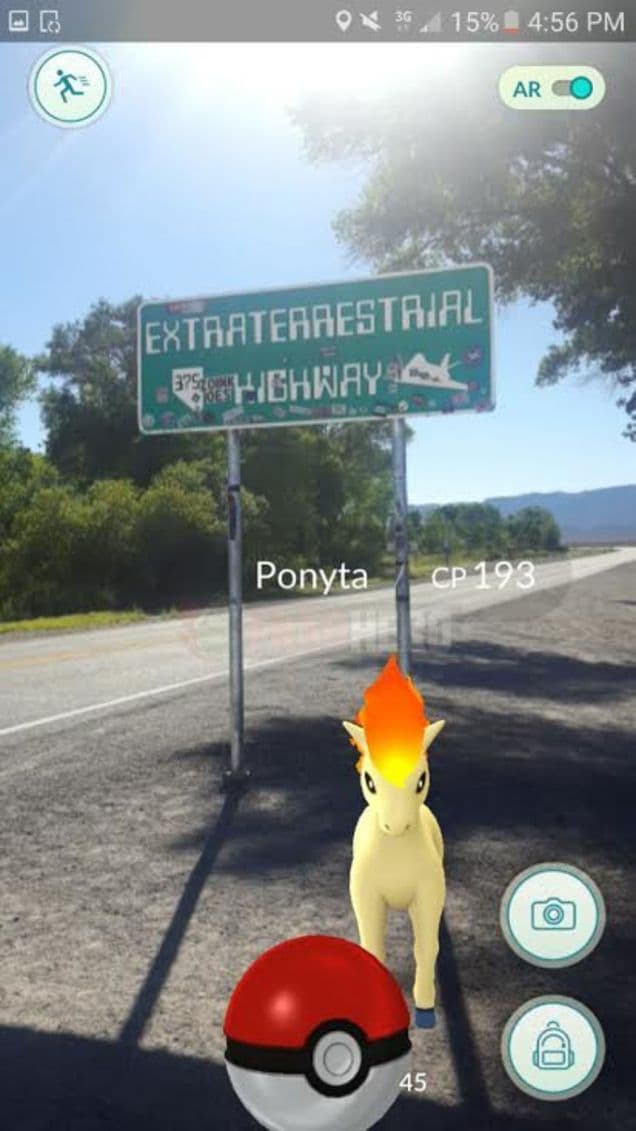 Si eso fuera poco, Ponyta se apareció también. Sucedió mientras caminaba por Extraterrestrial Highway. Donde todos esperan hallar un marciano, este sujeto encontró un buen pokémon. Mucho más interesante que vida en otros planetas, por supuesto.