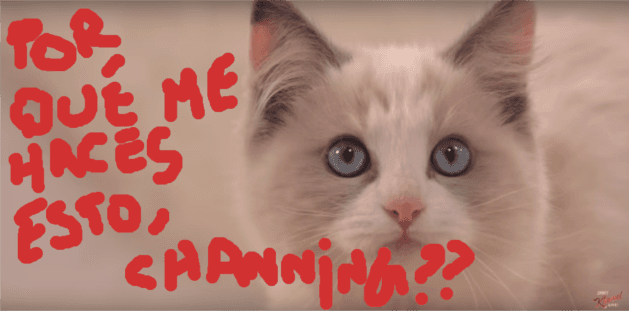 Bien... ¿qué paso entonces en el show de Jimmy Kimmel? Channing se sacó la máscara. Comenzó a insultar a un inofensivo gatito. Le dijo toda clase de disparates. ¡¿Quién insulta a un gato?!