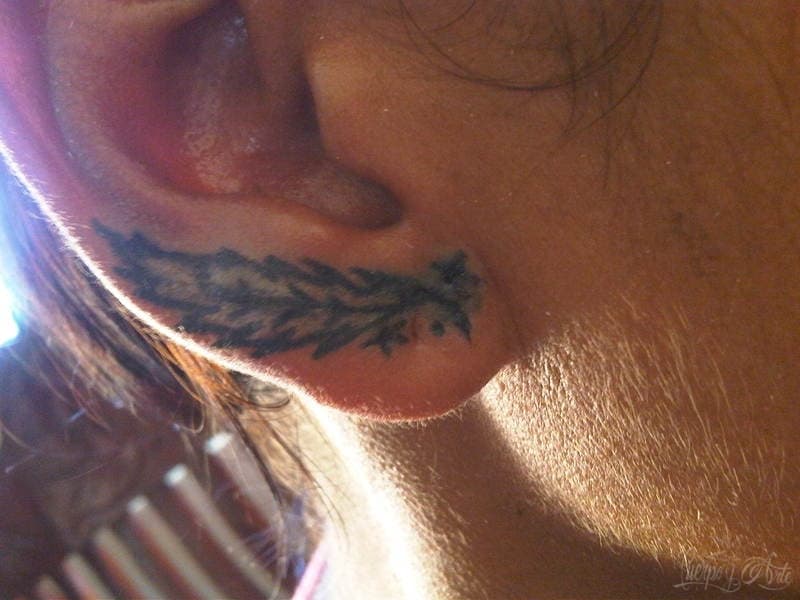 Tatuaje de pluma en la oreja de Erika