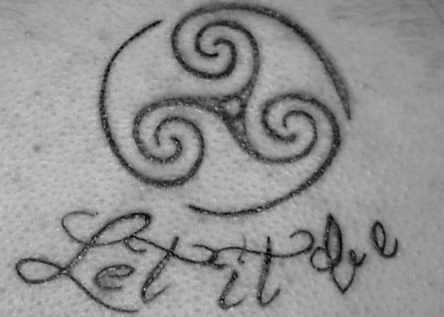 Hablamos de un tattoo que está compuesto por la célebre y hermosa frase de los Beatles Let it be y por un triskel celta, símbolo de la renovación.