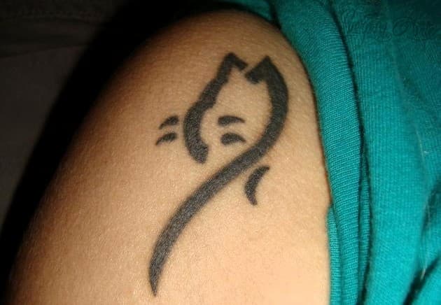 Adriana nos envió 2 tatuajes: uno consta de un pequeño gato, algo minimalista y caricaturesco, en un estilo símil tribal y otro tatuaje de una huella de perro. En ambos casos, lo que realmente importa para Adriana es el gran valor simbólico que tiene cada uno. El primero, ubicado en su hombro, se lo hizo en conjunto con sus amigas y representa la fuerte amistad que las une mientras que el de la pequeña huella, ubicado en su muñeca, simboliza el gran amor que Adriana siente por los animales.