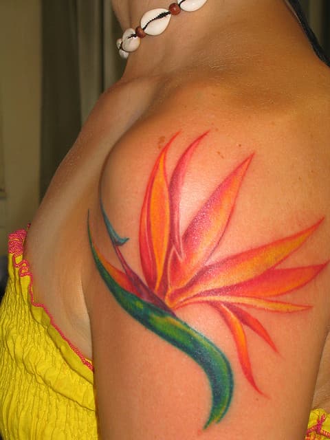 Los tatuajes de Aves del Paraíso pueden conseguirse en muchos lugares, desde el trabajo del tatuador y artista gráfico de los 60 y 70, Greg Irons, hasta los tatuajes japoneses tradicionales. Tienen tanto tiempo en vigencia, porque entre las aves, se podría decir que ésta es la diva, la más bella de todas.