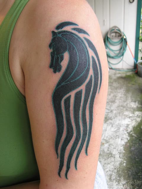 Si bien es un motivo principalmente elegido por hombres, los tatuajes de caballos también tienen sus adeptas en el público femenino. El estilo empleado en este tattoo puede ser el de las pinturas rupestres tradicionales o el tribal. También hay quienes le dan un toque gótico empleando colores muy oscuros, técnica que luce muy bien cuando se trata de caballos mitológicos, como el Centauro o el Unicornio.