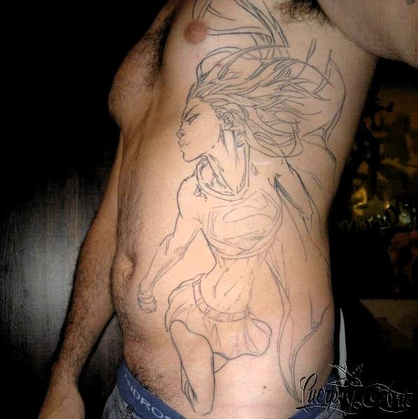 En tercer y último lugar, pese a que el amigo Gabriel no nos dejó una foto del diseño culminado, nos enseñó su último diseño sin colorear: una enorme Supergirl.