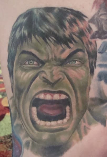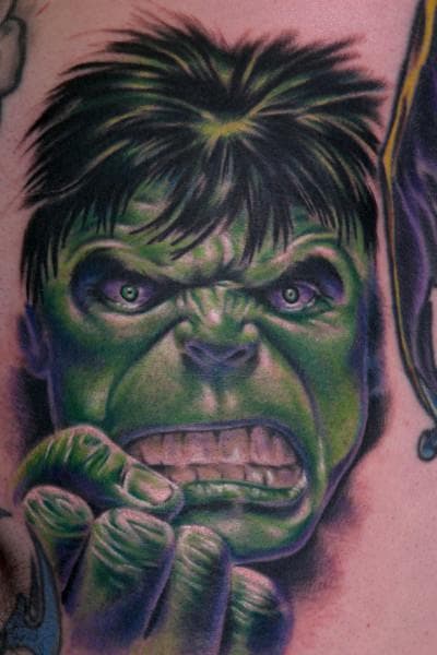 Otro de los mutantes de Marvel más populares en los tatuajes. En realidad me animaría a decir que no hay mejor tatuaje de cómics que representa la fuerza y el poder que un tatuaje de El Increíble Hulk. Es un ser sumamente poderoso y descontrolado, capaz de destruir lo que sea de un golpe pero incapaz de dañar a un inocente. Al igual que Guepardo, este es un símbolo de rebeldía, de pasión y de dejarse llevar por las emociones.