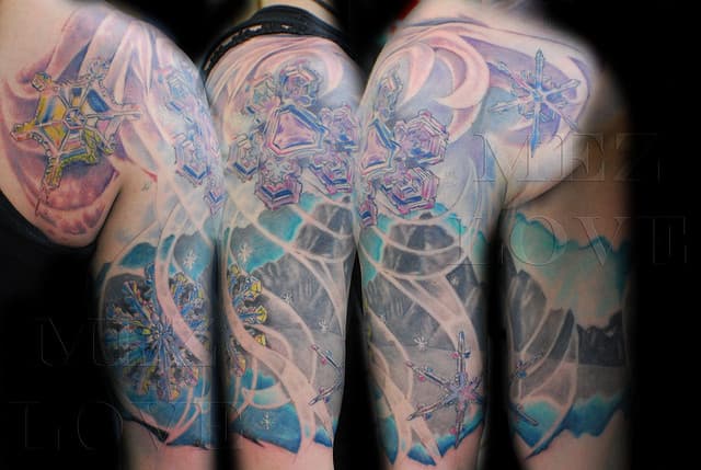 ¿Dónde colocar los tatuajes de copos de nieve? ¡Dónde quieras! Realmente, es un diseño sin restricciones, ya que puede ser muy pequeño o muy grande, eso depende del gusto de quien lleva el tattoo. Personalmente, creo que un lugar donde este diseño se ve muy bonito es el hombro.