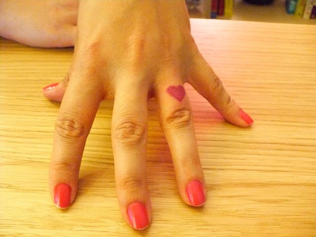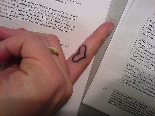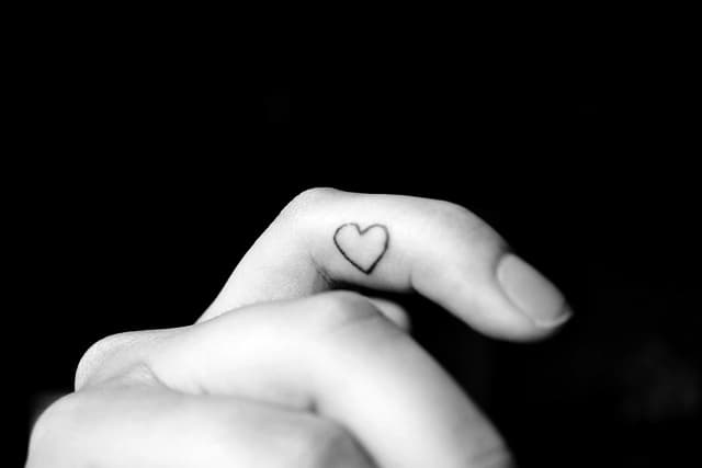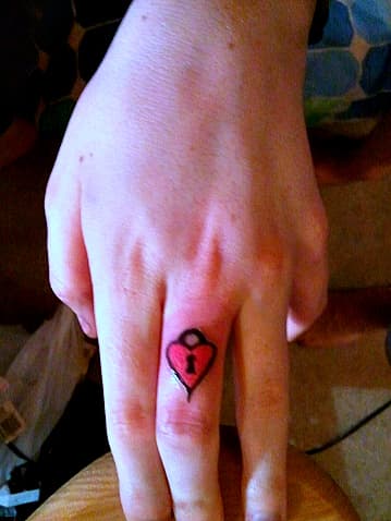 En primer lugar, estamos hablando de un tatuaje que indefectiblemente debe ser pequeño, casi como un detalle en el dedo. Francamente, opino que ése es una de los atractivos de los tatuajes de corazones ubicados en los dedos. El tipo de diseño depende de ti, pero de seguro no será uno demasiado cargado; recuerda que no tienes mucho espacio, y es mejor que se distinga el motivo de manera clara.