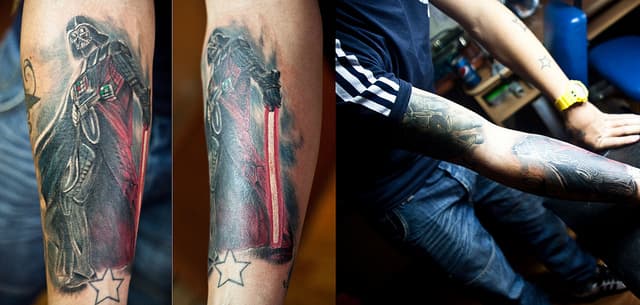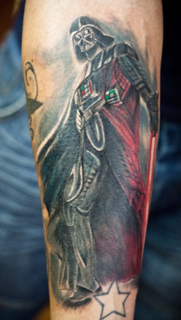 En los siguientes tatuajes de Darth Vader podemos encontrarnos con todo tipo de cosas: diseños grandes, pequeños, en diferentes estilos y ubicaciones de las más diversas. Algunos tienen un estilo realista mientras que otros son más bien caricaturescos e incluso paródicos.