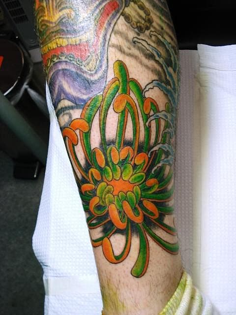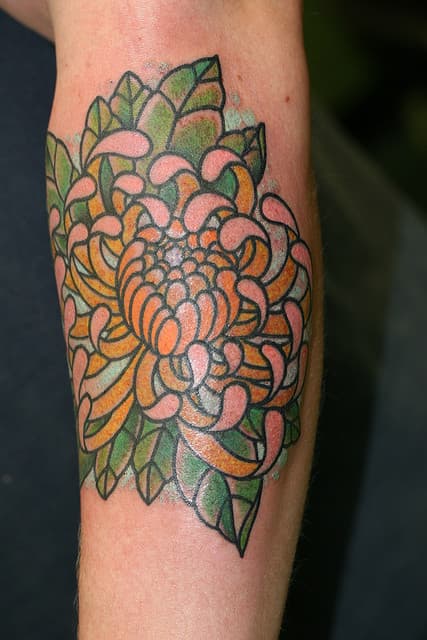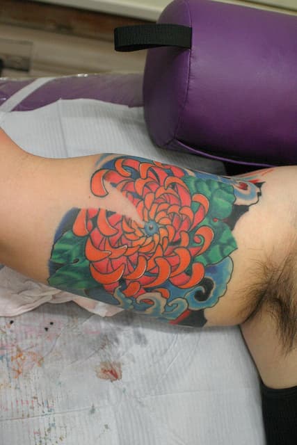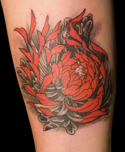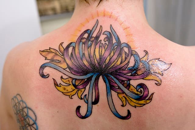 Ya le hemos presentado todo tipo de tatuajes de flores, en diferentes partes del cuerpo, con motivo de diferentes especies. Pero siempre hay más para conocer. En este caso les voy a presentar una hermosa flor que quizás muchos de ustedes no conozca y que como si fuera poco, además de su extrema belleza cuenta con interesantes significados. Estoy hablando de la flor de Crisantemo, de origen asiático.