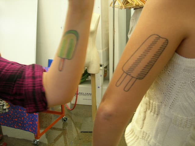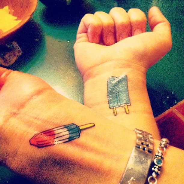 No es nada extraño ver personas que se hagan tatuajes de dulces, golosinas y a veces de comida de todo tipo, así que estos tatuajes de helados polos era algo de esperarse, porque la verdad es que son muy lindos y podrían ser relacionados tanto con la infancia (en donde se comen bastante) tanto con los días de verano.
