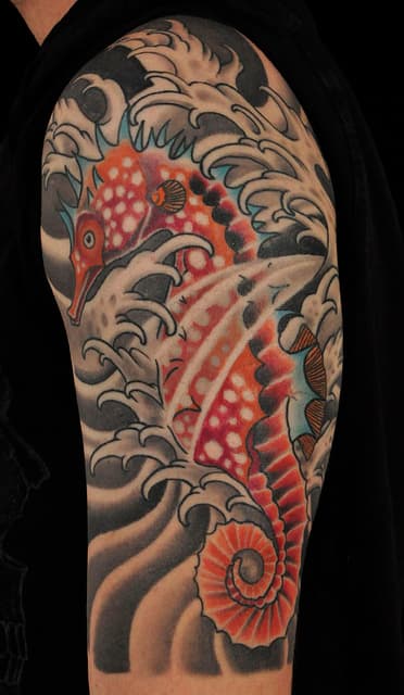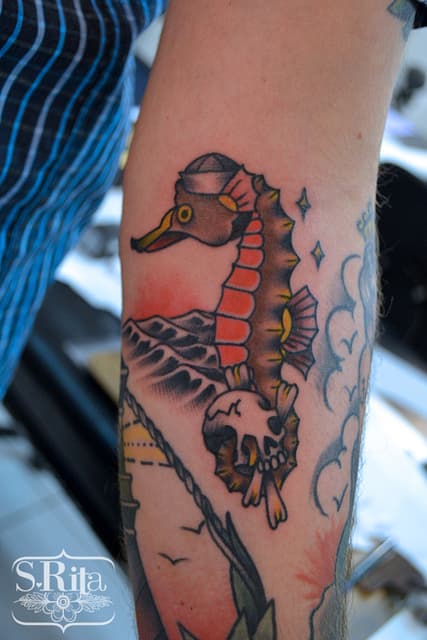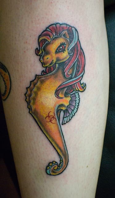 Si de diseños de tatuajes interesantes y versátiles se trata, creo que este animal es ideal. Además de simpático y atractivo, el Hipocampo (conocido también como caballito de mar) es un animal marino que se ofrece como un exelente diseño de tatuajes. Su forma curvada y su tamaño hacen que se puedan realizar de todos los estilos de tatuajes, desde los más realistas a los diseños más tribales.