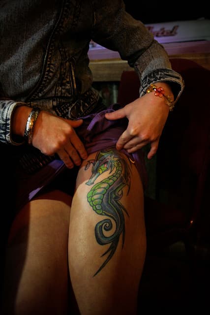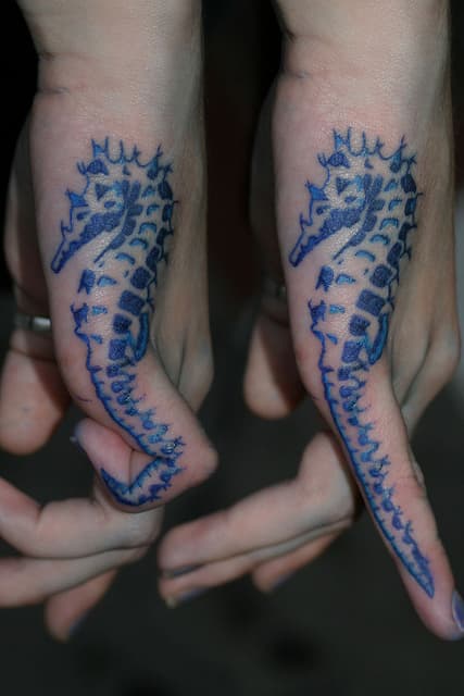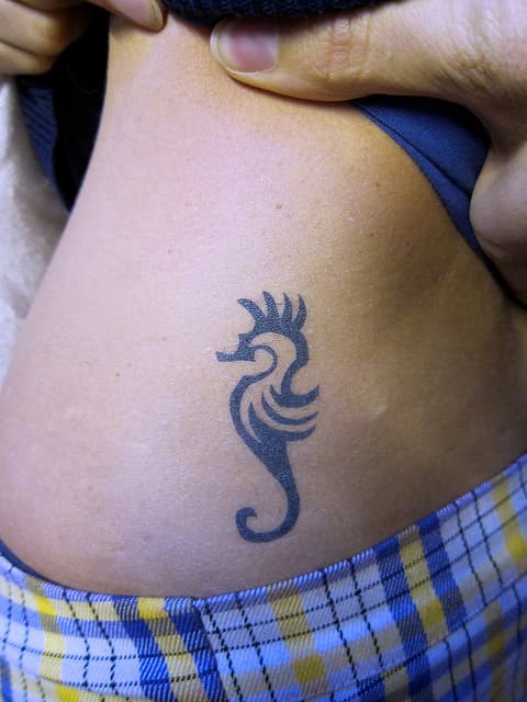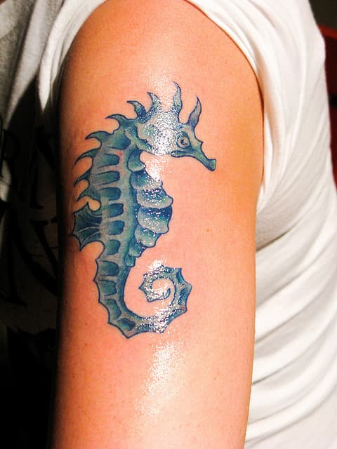 La forma estilizada de los caballitos de mar se presta para tatuarnos. Además, se puede realizar de distintos colores, dando un toque muy interesante a un animalito que de por sí es atractivo. Eso sí: aclaremos que este bicho no tiene ningún parentesco con los caballos, sino que simplemente son parecidos a la vista (también son muy relacionados con los dragones, ya que se les parecen mucho).