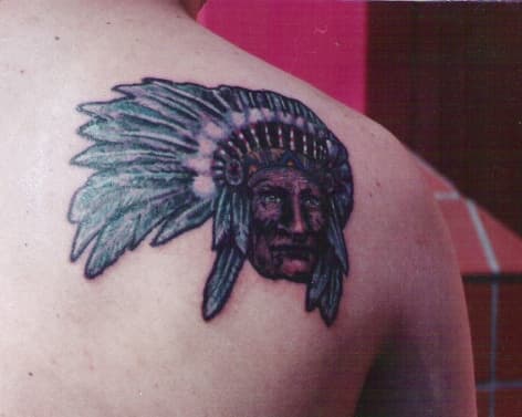 ¿Cuáles son los motivos para tatuajes de indios apaches? El más común es el del rostro del indígena, con su clásica y distintiva corona de plumas.