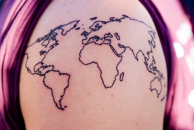 Tenemos, como podemos ver, los mapas de países (o hasta continentes, como la foto de arriba del todo). No necesariamente tendrá que ser el mapa del país al que uno pertenezca, pues puede ser el tatuaje de ese lugar que tanto adoras.