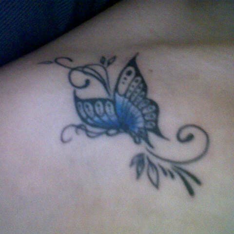 Retomamos nuestro correo de envios y con él el compartir diseños y significados. En el día de hoy en CuerpoyArte les mostramos el tatuaje que se ha hecho Marianelys y que nos ha enviado para mostrar al resto de la comunidad. Se trata de un tatuaje de mariposa que asocia a la rebeldía y a la amistad.