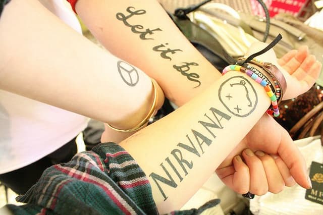 Ya sea por su música o por su trágico final Nirvana ha cosechado millones de fans en todo el mundo. Muchos de los tatuajes que podemos encontrar en esta galería hacen referencia a tapas de disco, retratos de Kurt Cobain, frases de canciones o simplemente logotipos de la banda.