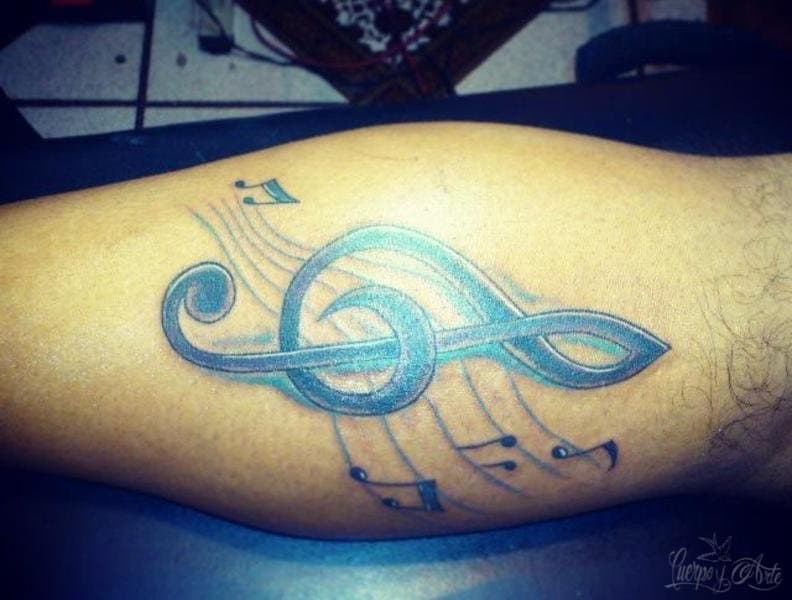 El otro diseño refiere a su pasión por la música. Se trata de una gran clave de sol con un pentagrama por detrás, en el cual pueden verse también algunas notas musicales. Para entender bien lo que significan estos tatuajes, veamos lo que el propio Josue nos estuvo contando en sus mismísimas palabras: