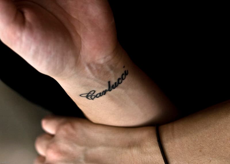 La mayoría de las personas elige ubicar su tatuaje de nombre en la muñeca, en la cara interior de ésta. Así, el diseño no queda tan expuesto a la vista de todos y además, adquiere un poco más de privacidad, es decir un poco más de secretismo, volviéndose más personal (aunque claro, no dejará de estar en tu muñeca y será muy fácil verlo). Sin embargo, en ciertos casos, la tipografía elegida resulta difícil de adaptar al poco espacio de la muñeca o el nombre es demasiado largo, por lo cual es preciso buscar otras alternativas.