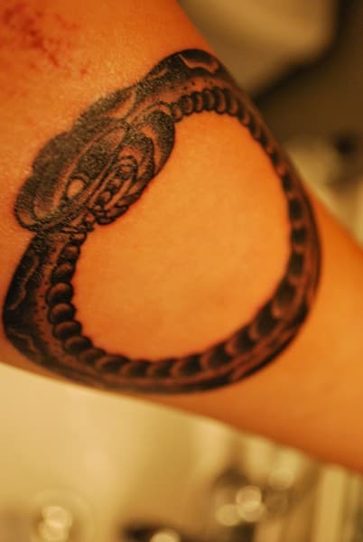 Los ouroboros son uno de los símbolos relacionados con la eternidad más antiguos que existen. Un ouroboro, también conocido como uroboro, es una serpiente o un animal de forma similar que literalmente está comiéndose a sí mismo. Este símbolo tiene muchos significados en los tatuajes.
