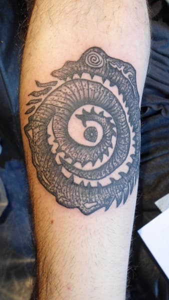 El significado de este símbolo y varios de los aspectos del mismo, al momento de llevarlo a tinta y piel, hacen que este diseño sea realmente interesante. Un ouroboro esta comiéndose a sí mismo para sustentar su propia vida. Representa la renovación y nada mejor para simbolizar esto que un tatuaje de ouroboro. La renovación forma parte de la naturaleza misma tanto de las serpientes como de otras tantas especies de reptiles.