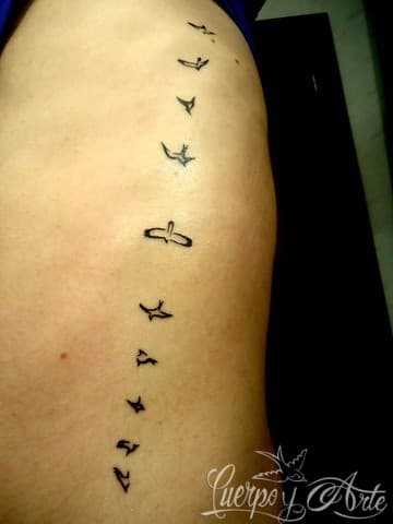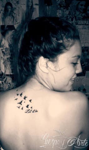 Por último tenemos el diseño de Camila, también constituido por pájaros pero con el detalle de tener la popular frase “ Let it be” incluída. Ella nos dijo que este tatuaje representa su libertad, sus ganas de volar y el hecho de siempre ser ella misma. Además de todo esto, Camila también nos dice que este es un tatuaje muy especial pues fue su primer tatuaje, aunque seguramente, no el último.