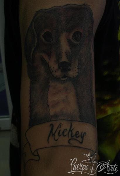 Bien, como te mencionaba y como podrás apreciar en las imágenes que Gerardo nos enseñó, su tatuaje consta de un retrato de su perro “Mickey” en su brazo. El mismo tiene grandes proporciones y está hecho todo en tinta negra. En sus propias palabras, estas fueron algunas de las cosas que Gerardo nos estuvo contando sobre su diseño: