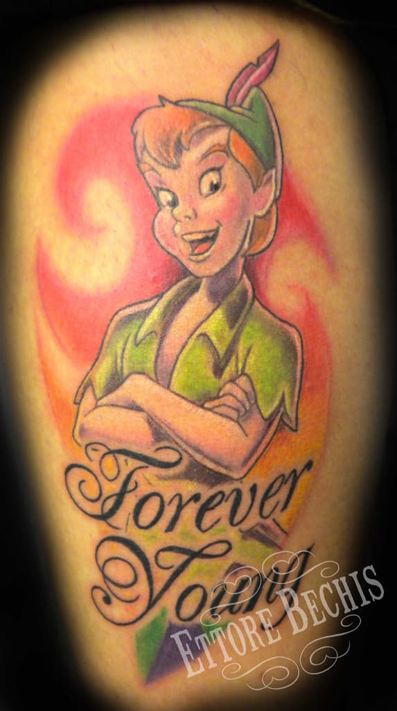 Navegando por curiosidad respecto a ese tema nos dimos cuenta que uno de los personajes más repetidos a la hora de tatuarse personajes animados infantiles era Peter Pan.