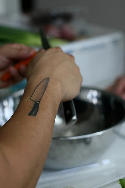 Por supuesto que no necesariamente hay que ser chef para hacerse un tatuaje de utensilios de cocina, creo que solo basta con ser un amante del mundo culinario. Sin embargo, suelen ser los cocineros profesionales los que se hacen este peculiar tattoo.