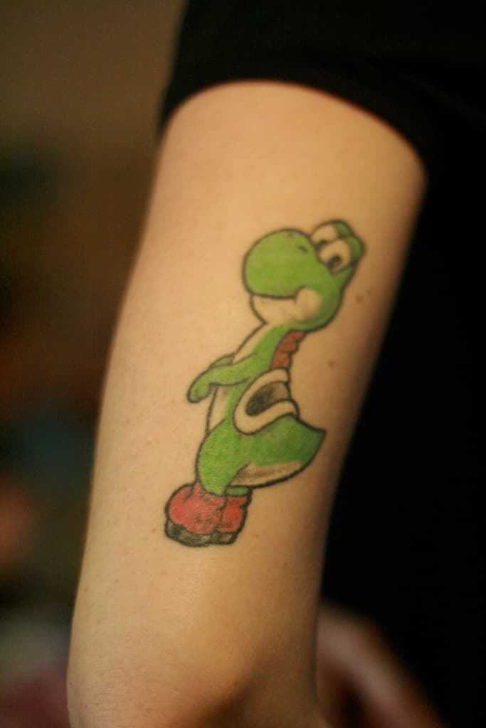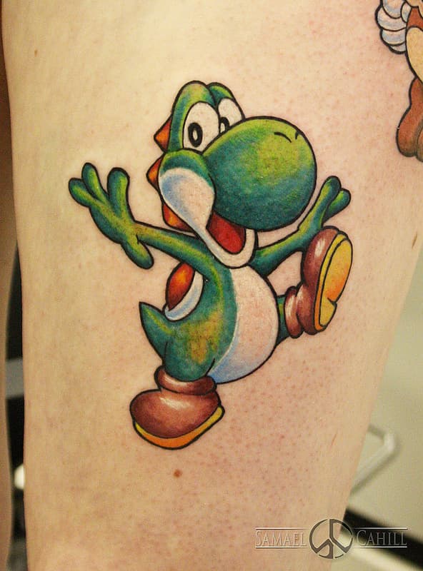 Existen miles de personajes en el mundo de Nintendo pero pocos son tan adorables como Yoshi. Podemos encontrar tatuajes de Mario, de la Princesa Peach, de Luigi e inclusive de Honguito pero pocos serán tan divertidos y raros como los de este pequeño dinosaurio.