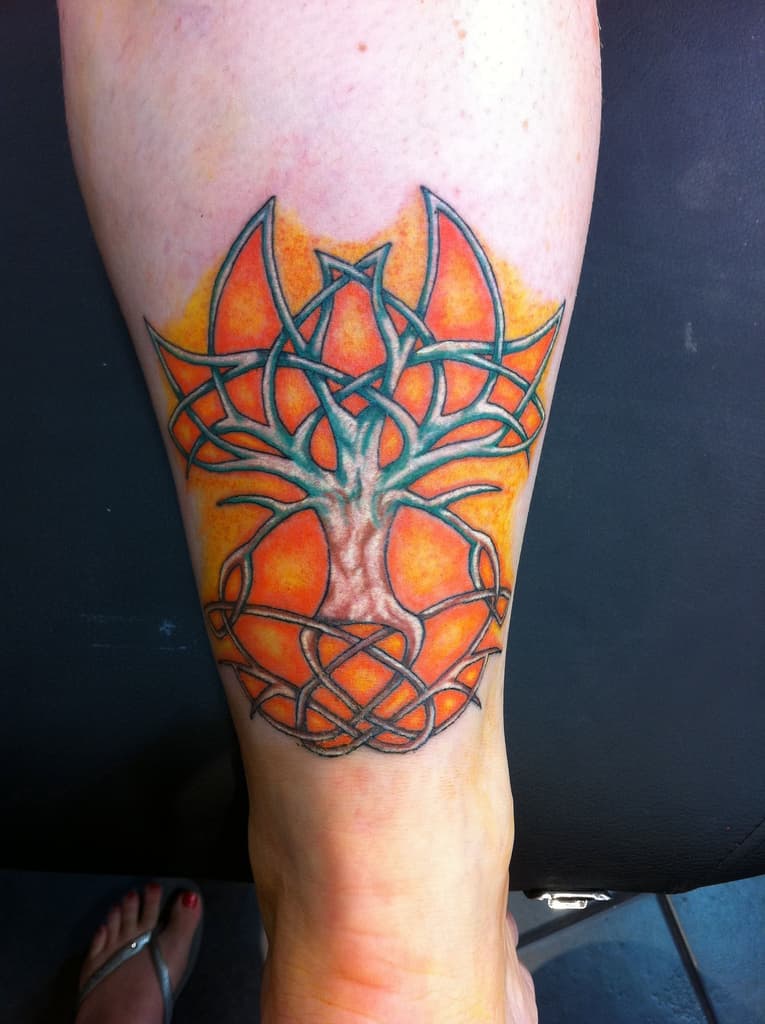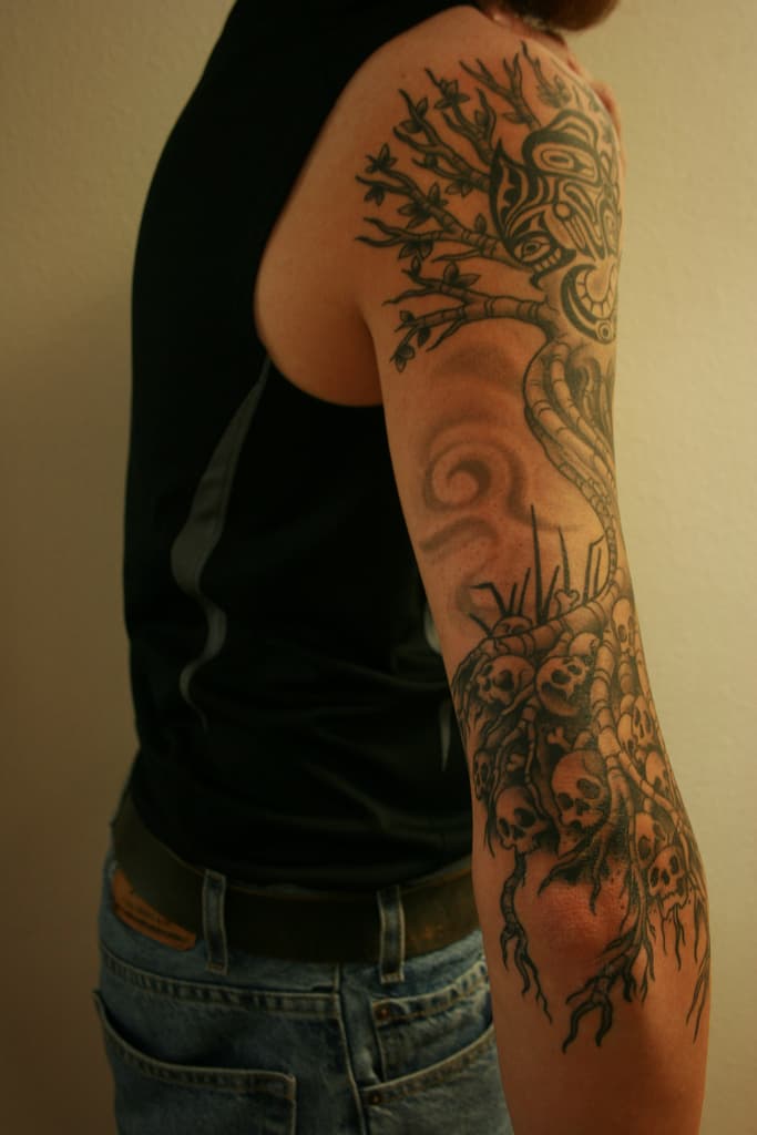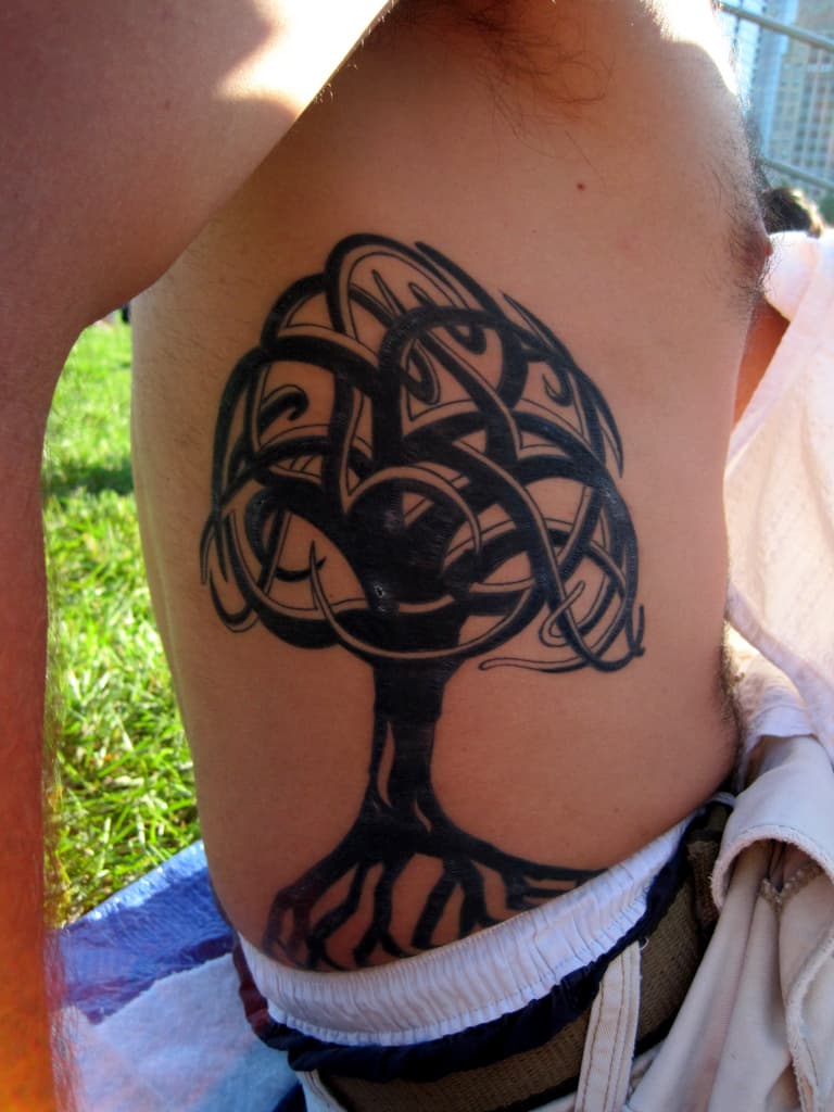 Este árbol es un motivo recurrente de tatuajes porque posee un significado fácilmente aplicable a las vivencias y creencias personales. Al expresar de cierta manera la comunicación entre las raíces, la tierra y el cielo, refiere y simboliza bien la vida de una persona y su comunión con la naturaleza y con la espiritualidad.