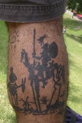 Todos conocemos al ingenioso hidalgo Don Quijote de la Mancha, famoso personaje de la novela homónima escrita por el español Miguel de Cervantes en 1605. Esta novela no es un simple cuento sino que es una interpretación de la vida sobre lo real y lo irreal, sobre la aventura y sobre si es posible cambiar el mundo antes de que éste nos cambie a nosotros. Muchas personas en todo el planeta se han sentido tocadas de una u otra forma por este antiguo relato y una forma de mantenerlo siempre presente ha sido a través de los tatuajes. Es por esto que hoy nos dedicaremos especialmente a ver algunos tatuajes de Don Quijote de la Mancha.