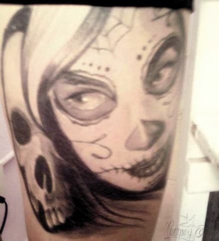 Sobre su tatuaje de La Catrina con una calavera, la clásica deidad mexicana que ya es un ícono en los tatuajes, Belén nos señaló:
