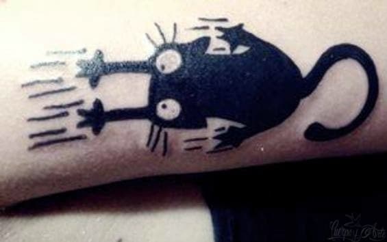 Por último tenemos el tatuaje de gato en estilo caricaturesco de su brazo. Sobre este, Belén culmina contándonos:
