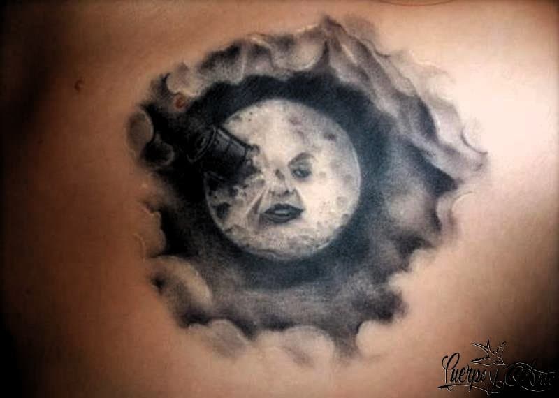 De acuerdo a lo que Grecia (quien nos escribió desde León; Guanajuato, México) nos contó, este peculiar tatuaje de una Luna es un tributo a la película muda francesa Le Voyage Dans La Lune, del año 1903.