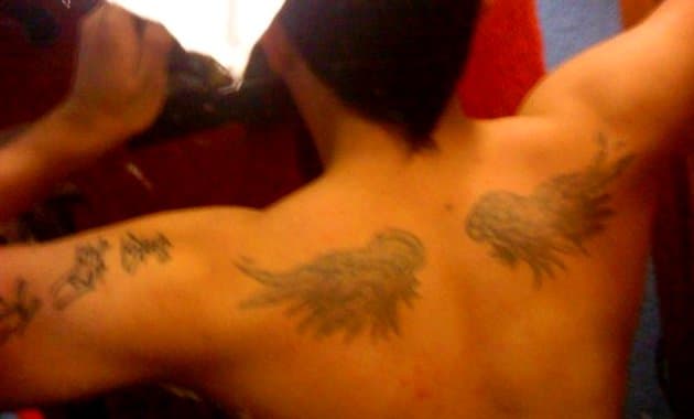 César Castellon compartió con nosotros a través de nuestro correo de envíos dos tatuajes muy importantes para él que remiten a personas muy queridas y que conforman en sí mismos dos de los tatuajes masculinos más comunes. Se trata de un tatuaje de un dragón y de un par de alas en la espalda.