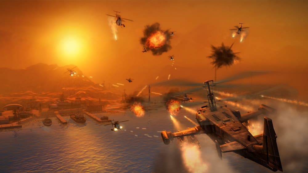 demás se tendrá la oportunidad de jugar en modo cooperativo con otro jugador, así uno se encargará de pilotar el helicóptero, mientras que otro será el encargado de disparar las armas en estos escenarios que prometen ser completamente destructibles.
