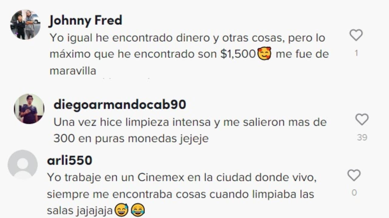 Otros empleados de cine se unieron a la joven y compartieron sus experiencias, pues es común que se encuentren algo en el piso de las salas cuando las limpian.