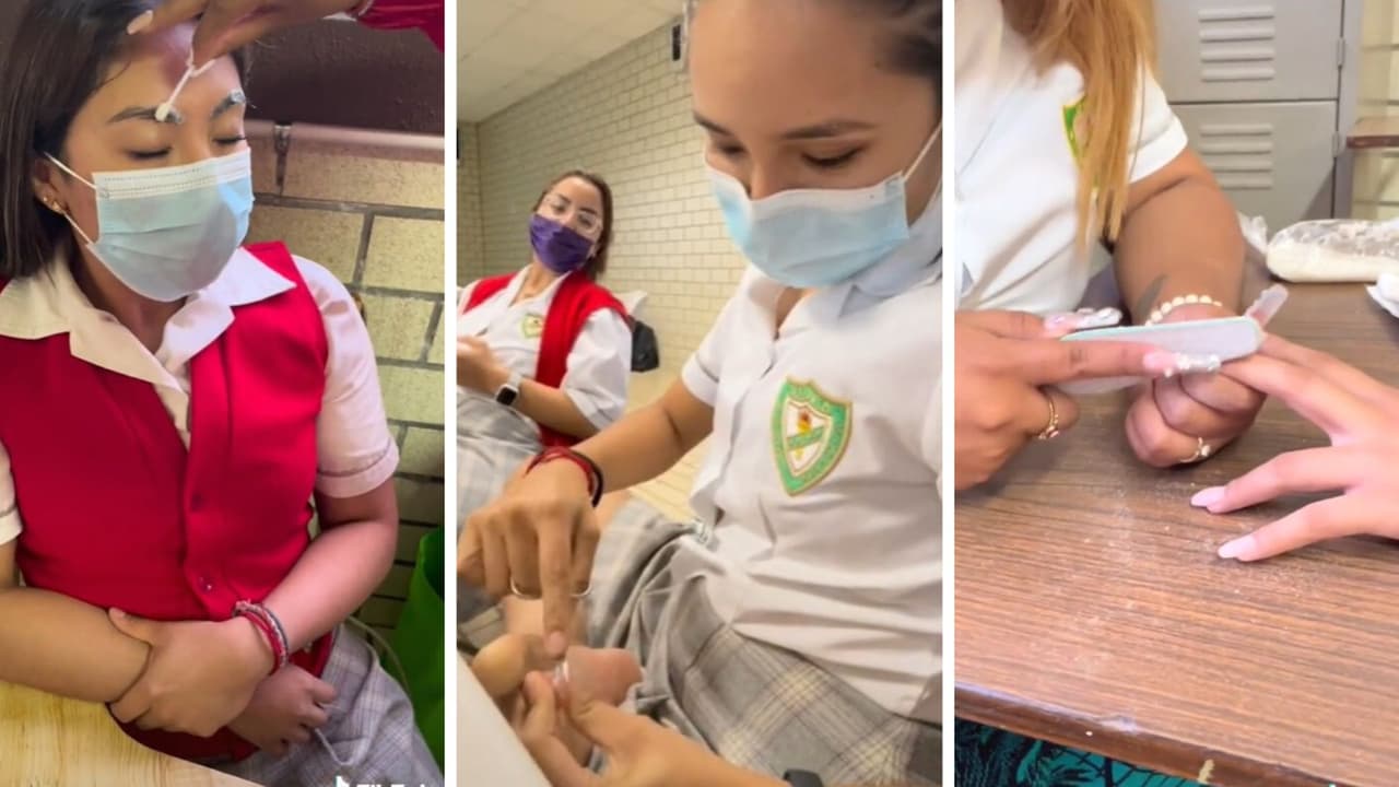 Pone mini salón de belleza en su escuela con todo y arreglo de uñas: su idea impactó en TikTok