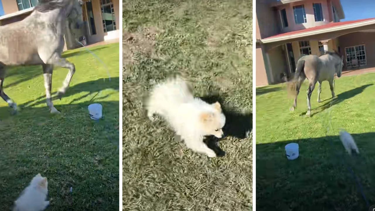 El enfrentamiento del perrito y el caballo causó risas en todo el Internet