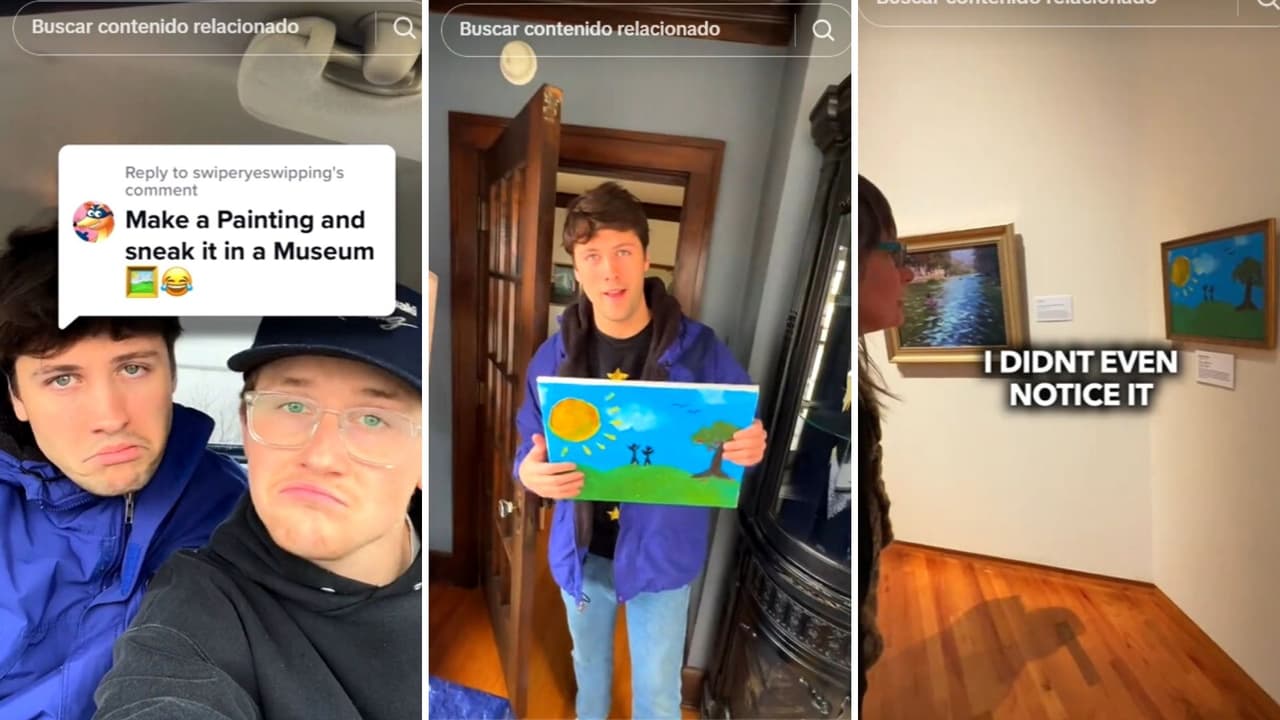 Un par de reconocidos tiktokers hicieron reír a sus seguidores al mostrar cómo pintaron un cuadro y lo pusieron sin permiso en un museo.