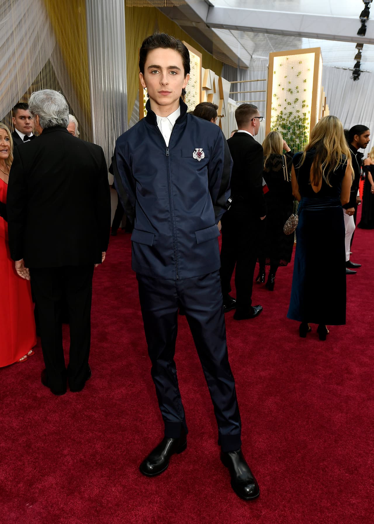 El talentoso actor lució un look relajado, con una chaqueta Prada color navy. Si bien fue uno de los outfits más casuales de la noche, eso no impidió que Timothée captara la atención de todos los presentes.