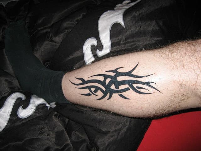 Tal como sucede con los tattoos de tribales en los brazos, los de tribales en la pierna son más populares entre hombres que entre mujeres. Ellos, sobre todo los que tiene un físico trabajado y bien desarrollado, suelen optar por diseños como éste ubicados en esas zonas.