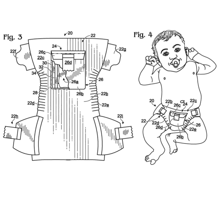 La actriz y reina del terror Jamie Lee Curtis consideró que es más efectivo tener el pañal y las toallitas juntas en el momento de cambiar el pañal de un bebé, por ello creo una pañal con un pequeño compartimento para guardar toallitas húmedas, el cual posteriormente ayuda a desechar el pañal sucio de una manera más compacta.