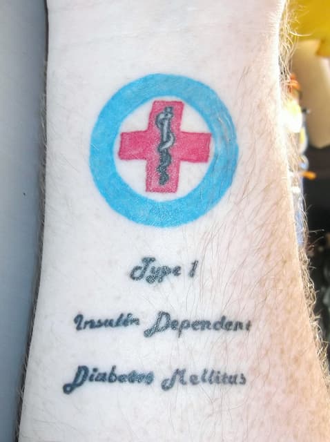 "No hay riesgos para tatuarse si se es diabético. Es más: hay incluso diabéticos que se tatúan información sobre su enfermedad por si les llega a ocurrir alguna emergencia (como quedar inconcientes y necesitar una inyección de insulina) y necesitan ayuda. Es como un brazalete de alerta médica permanente, muy útil en algunos casos".