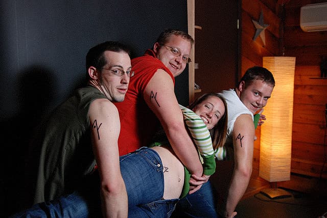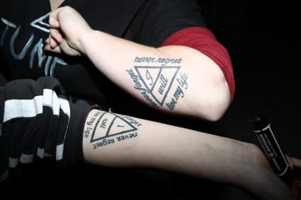 "Mi hermano mayor Joe, se casó anoche. Sentí que una manera de permanecer juntos mientras estamos separados era hacernos tatuajes iguales. Mis hermanos pensaron que era una gran idea, entonces terminamos con tatuajes de sables luminosos en el dedo." Estas son las palabras de una chica que justifica en un sitio web el motivo de ese tatuaje tan particular.