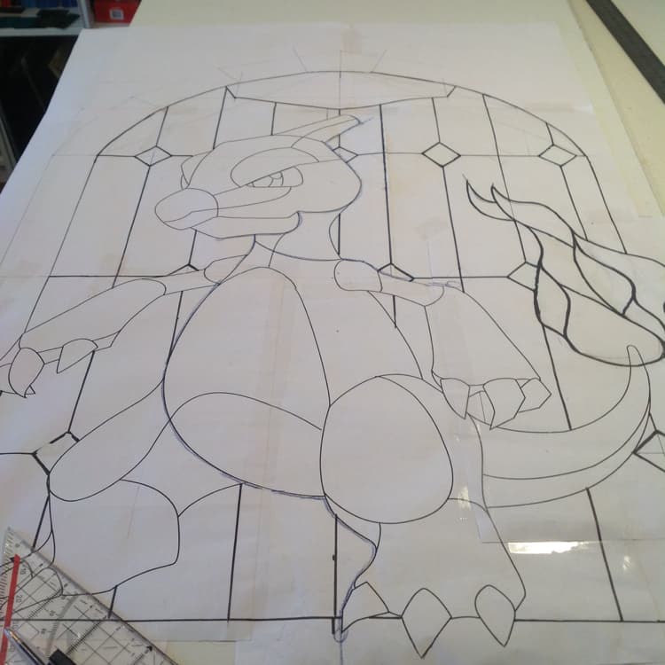 Bosquejo de Charmeleon, ya pensado como un vitral